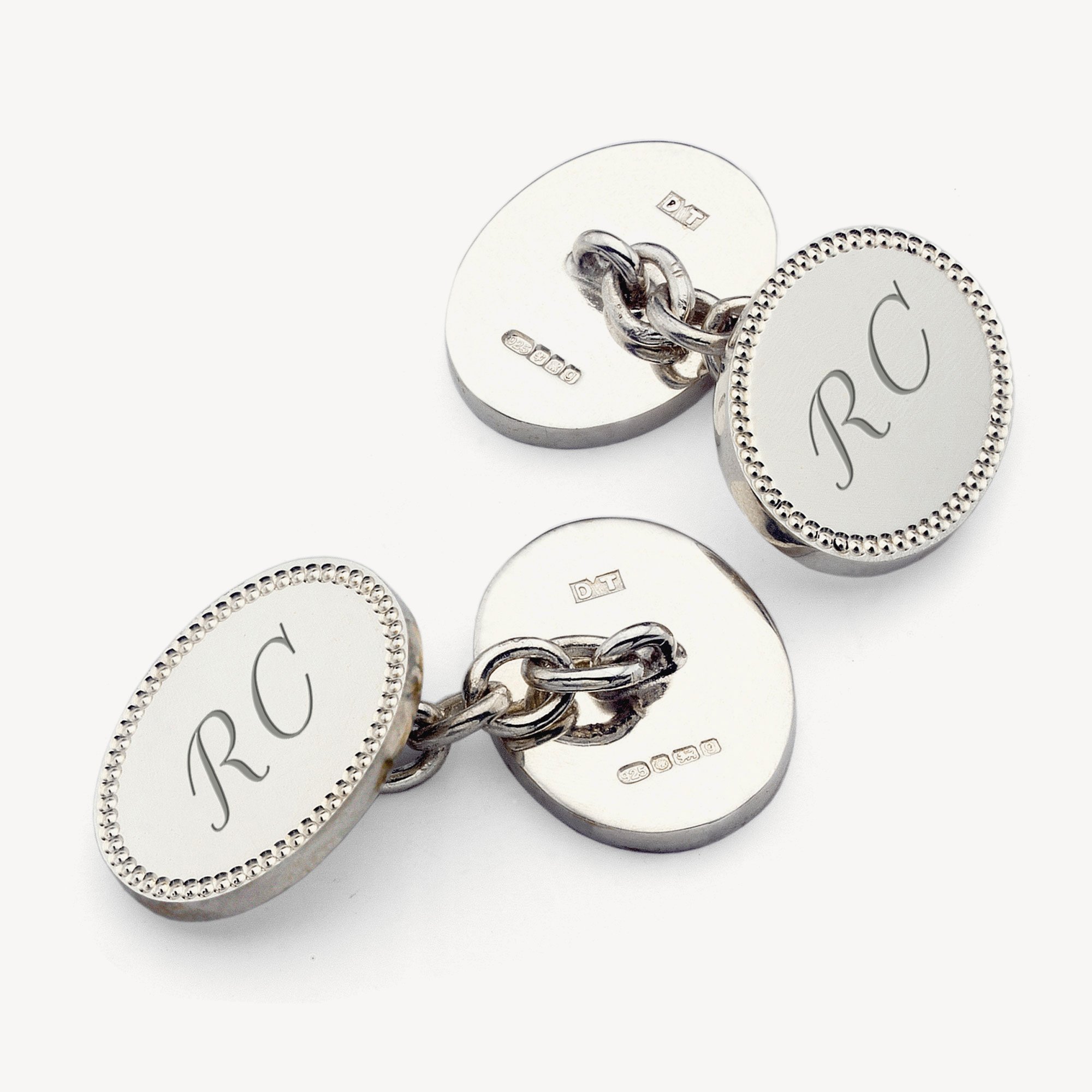 Engine Turned Sterling Silver Engraved Cufflinks